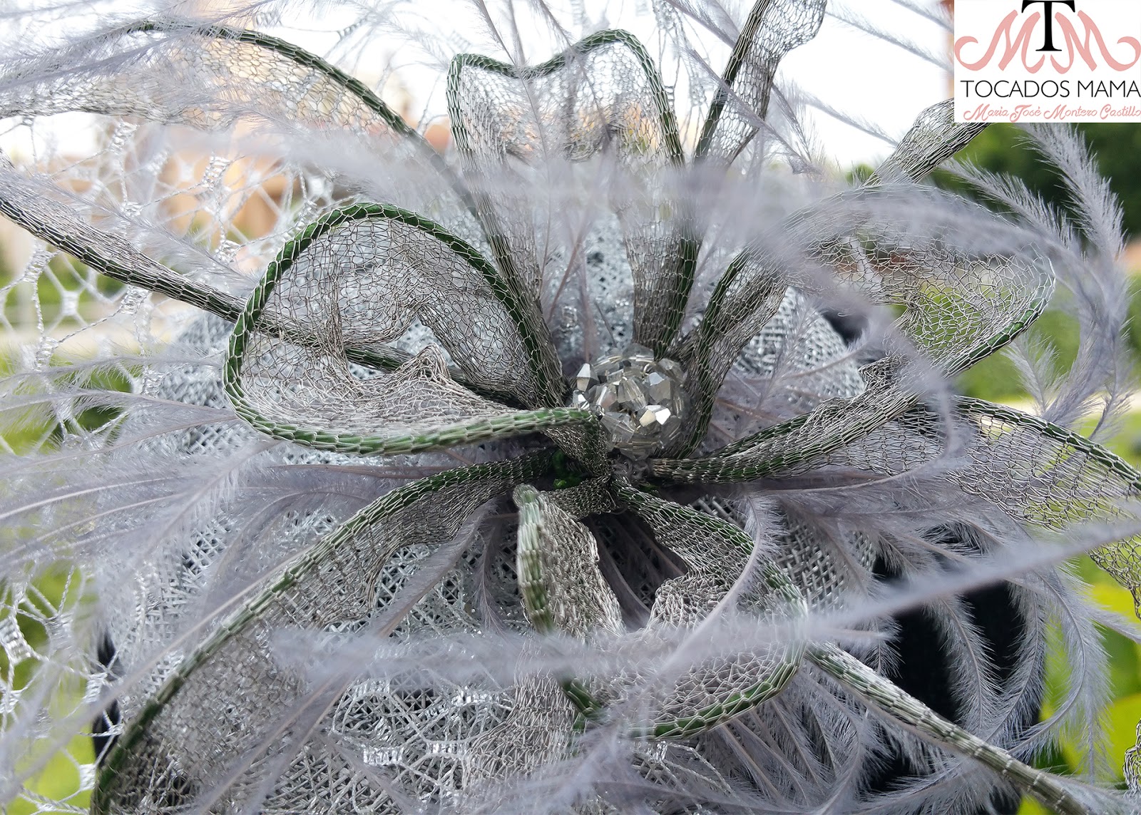realizado en raso, cristales checos de color rosa nude, alambrados con mucho